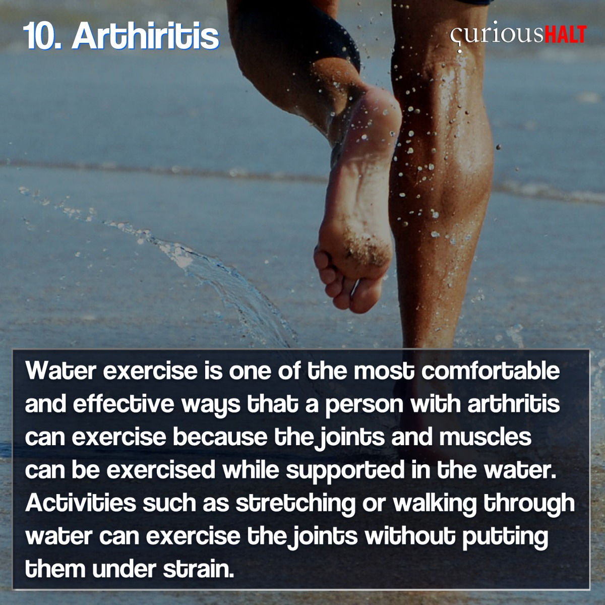 Most of the time people who have arthritis are recommended to swim as underwater it does not put any pressure on the troubled body parts.